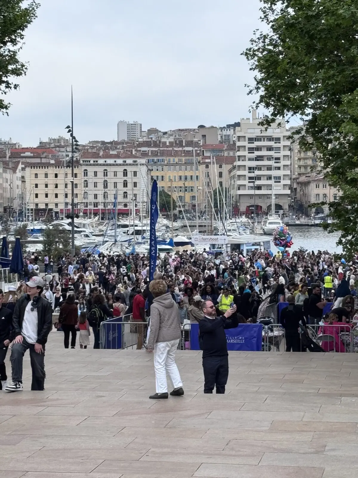 Wenn du Marseille auf eigene Faust erkunden möchtest, musst du zunächst ins Stadtzentrum gelangen. Vom Hafen aus stehen dir Shuttlebusse oder Taxis zur Verfügung – allerdings waren die Warteschlangen für die Busse bei unserem Besuch extrem lang.