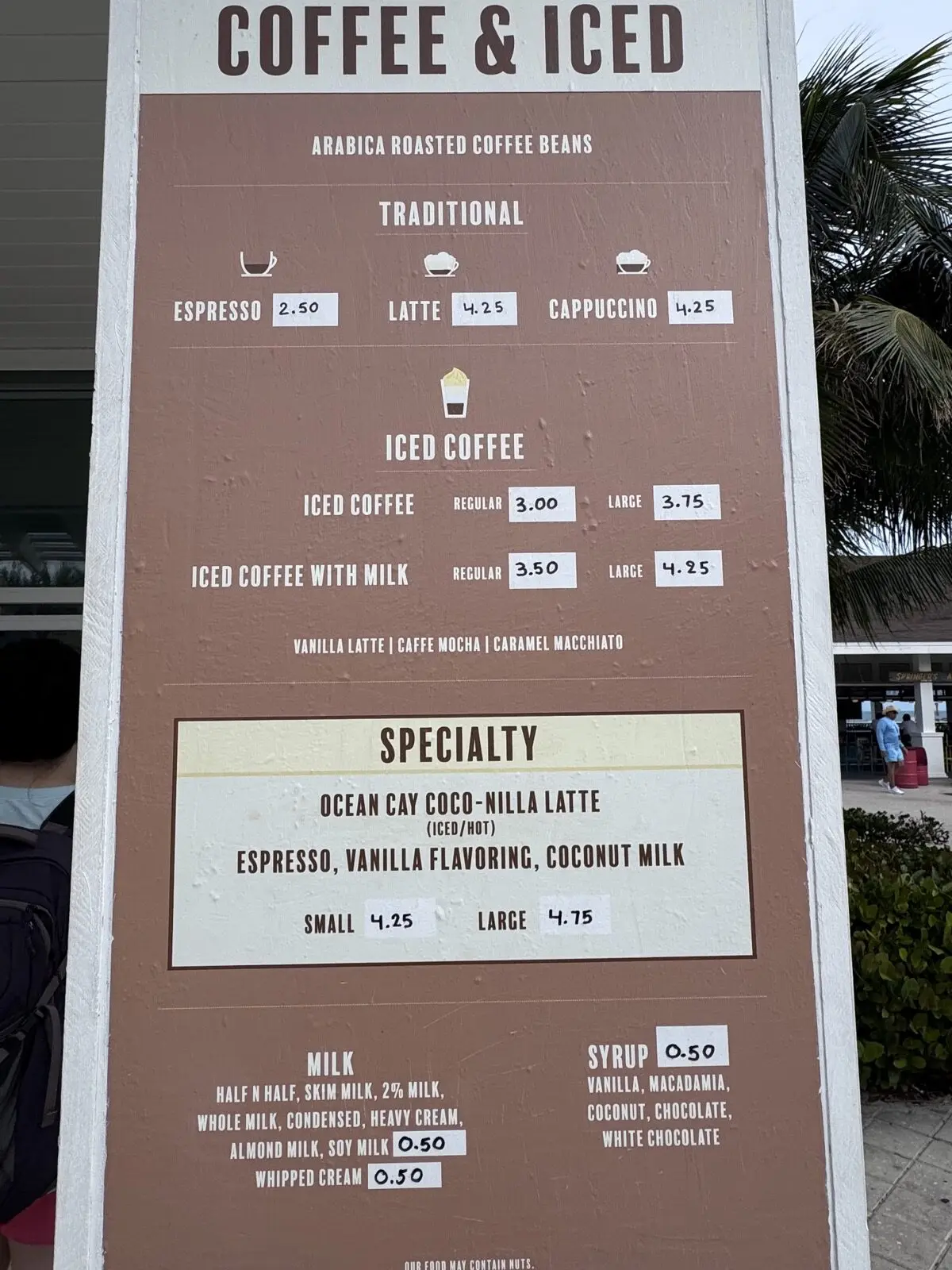 - Cruise Card statt Bargeld: Auf Ocean Cay zahlst du auf der Insel in der Regel mit deiner Bordkarte. Bargeld in US Dollar ist vor allem dann praktisch, wenn du am Bahamian Market Souvenirs kaufen möchtest.