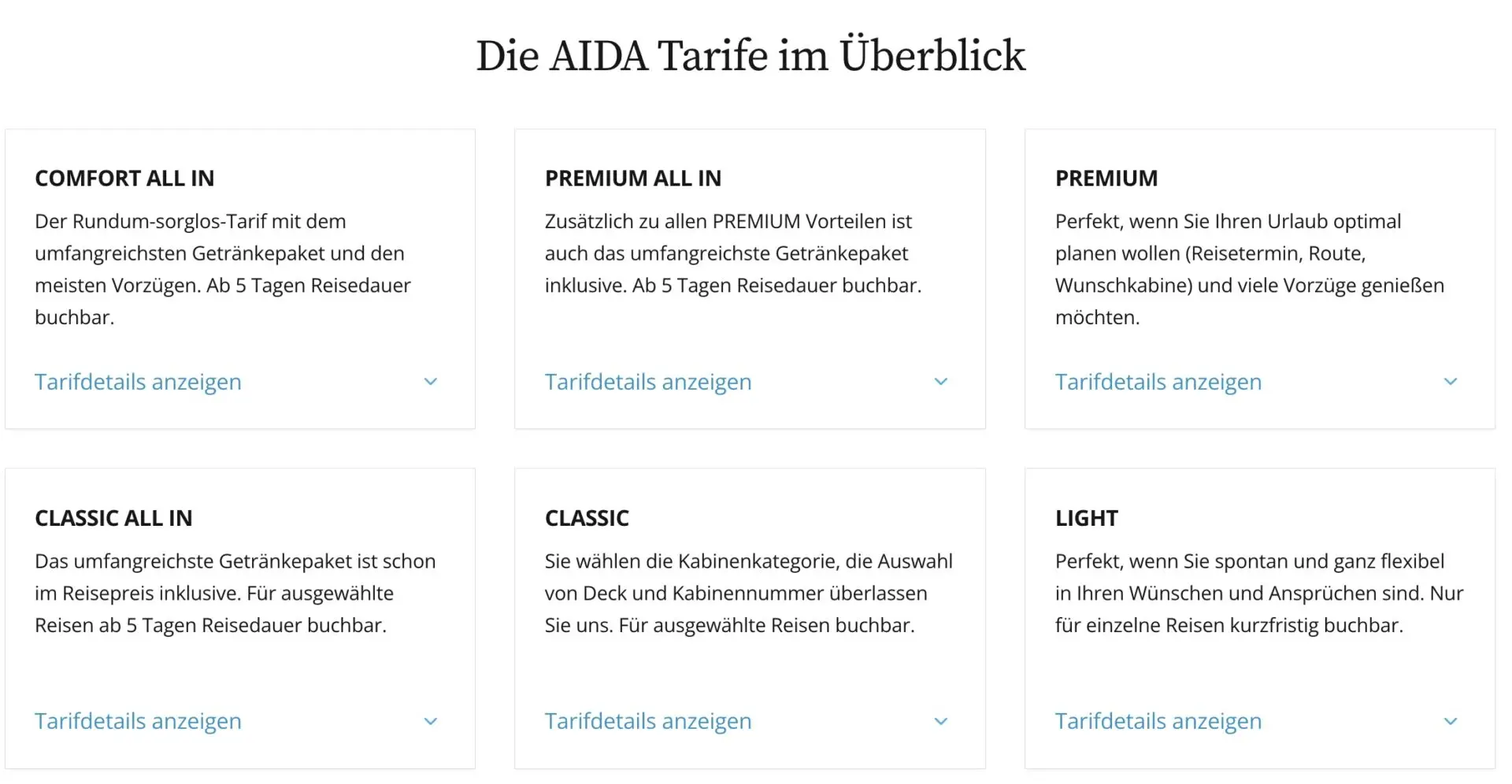 Diese Übersicht soll dir helfen, die neuen AIDA-Tarife besser zu verstehen und die richtige Entscheidung für deine nächste Kreuzfahrt zu treffen.