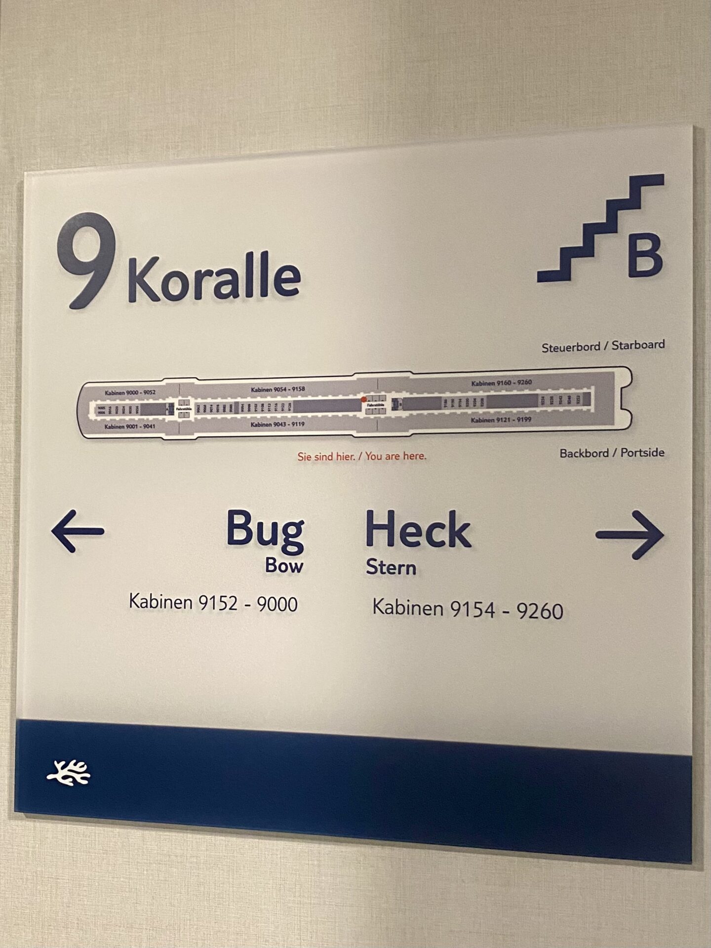 Ein Deck bei Kreuzfahrtschiffen ist eine horizontale Ebene oder ein Stockwerk, auf dem sich verschiedene Bereiche des Schiffes befinden. Kreuzfahrtschiffe haben oft viele Decks, die jeweils unterschiedlichen Funktionen dienen, von Kabinen über Restaurants und Freizeiteinrichtungen bis hin zu technischen Bereichen und Maschinenräumen. Die Decks sind typischerweise nummeriert oder tragen Namen, die Gästen und Crew helfen, sich an Bord zu orientieren. Die öffentlichen Decks beginnen unten meist bei 2 oder 3 und enden oben je nach Größe bei 10 bis 16.